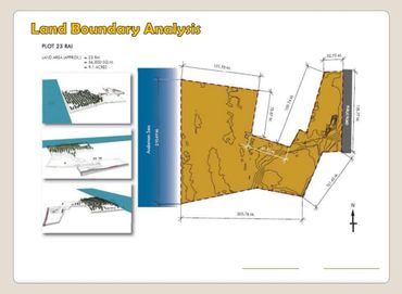 Prime Location: Private beachfront with gradual cliffs, ending in stunning westerly sunset views across the Andaman Sea. The plot rises to a plateau, offering 180-degree views of the ocean and lush mountainous jungle.