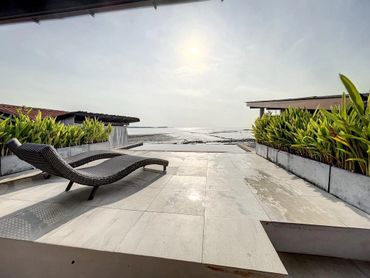 There is a spacious balcony with an outdoor dining area where you can enjoy your meals while marveling at the mesmerizing ocean views. Relax in one of the sun loungers while "taking it all in." A perfect spot for the sunrise!